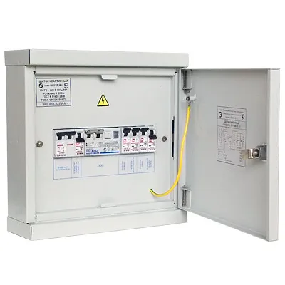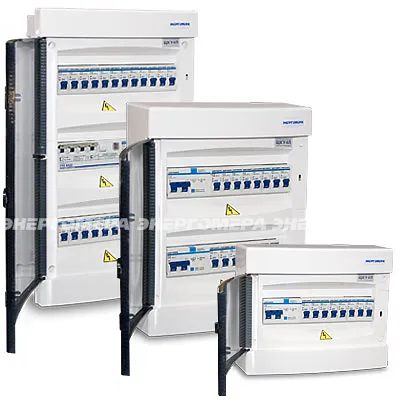 Щит распределительный этажный (встраиваемый в нишу) - устройство для распределения электрической энергии, а также для защиты распределительных цепей при перегрузках, коротких замыканиях и недопустимых токах утечки на землю (с устройством защитного отключения на вводе) в сетях с глухозаземленной нейтралью (системы заземления TN-S и TN-C-S)