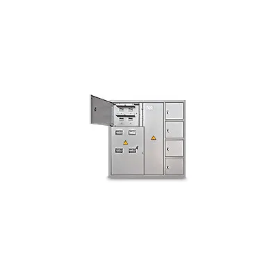 - Имеет силовой и низковольтный отсеки с внутренними замками (разной секретности). Замок силового отсека укомплектован четырьмя ключами, слаботочного - двумя.