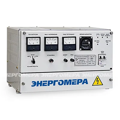 - Автоматическое поддержание защитного потенциала на сооружении на заданном уровне, в пределах от -0,5В до -3,5В (при подключении датчика потенциала, например, медно-сульфатного электрода сравнения);