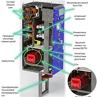 С целью обеспечения безопасности при возникновении электрической дуги модули шкафа разделены металлическими перегородками на четыре отсека: