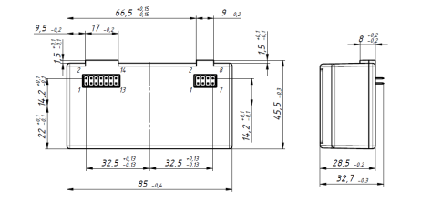 - Габаритные размеры модуля – 85х32,7х45,5;